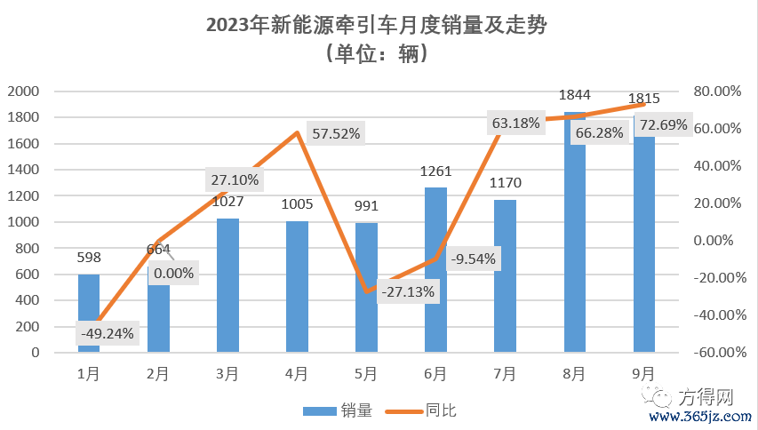 9月份,新能源牵引车实现年内第五个增长,同比“3连增”。四季度,新能源 牵引车能否继续保持高额增长态势,创造更多记录?方得网将持续关注。